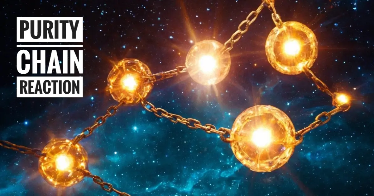 The key concept here is that each Nature of GOD has an individual correlation with Purity, and Purity itself is a Nature of GOD. Purity does not stand alone but represents the chain that each Nature correlates. Once a single known Nature is corrupted or has an impurity, it will have a similar domino effect, but unlike domino, which follows a linear and ordered chain reaction, we cannot put any sequence on the Nature of GOD and how the chain reaction works depends on the correlation of each other’s Nature. For the domino effect, tapping the middle tiles won’t affect the area before the middle or vice versa. In the Purity Chain Reaction, regardless of the order or position of Nature, as long as there’s a correlation, the chain reaction will continue to take effect. At the initial point, it will create a ripple effect, which will cause a chain reaction in different directions.